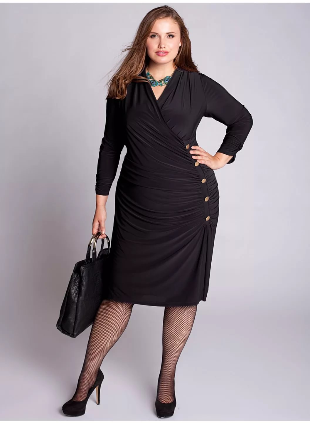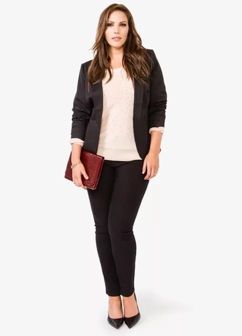 Owners of magnificent forms style will help to look elegant and personable. With proper selection of details of the costume, you can beat the imperfections, visually “pull out” the figure, giving it a slimness. Shortened jackets and mini skirts are contraindicated for such women, it is possible to balance the figure favorably by using an elongated jacket with a diagonal or horizontal strip.