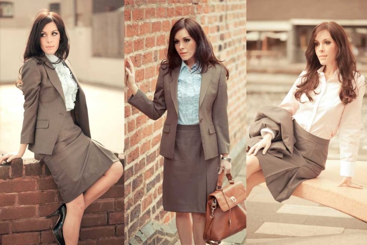 The modern formal business style is noticeably different from the original image, when women sought to be at the helm on a par with men. And yet, the basic elements of the costume remained the same. Although today the style, the silhouette and shape of the suit is more feminine and smooth.