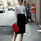 The first prototype of the office style of the 1900–1910s was an ensemble consisting of a snow-white blouse with a high stand-up collar, decorated with a brooch and a long narrow black skirt. In cool weather, an elongated jacket, stitched from the same textiles as the skirt, was added to the strict dress code. The image was supplemented with lace-up boots.