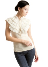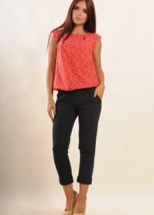 - Blouse. It can be a laconic cut or with a bright accent (flounce, jabot);