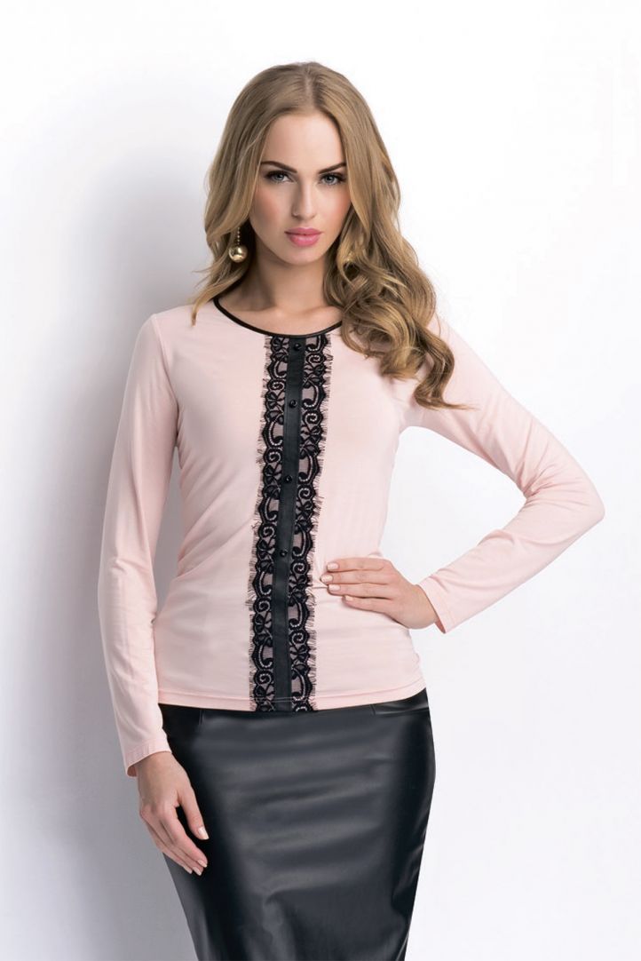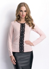 A romantic, feminine look will help create a gray-pink blouse with sleeves in a contrasting shade. The highlight of the dress is a bow of finishing material. Such a product can be combined with a straight cut skirt and a sleek top.