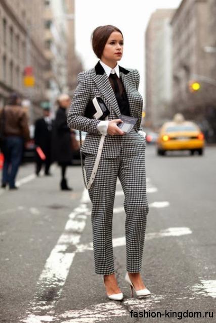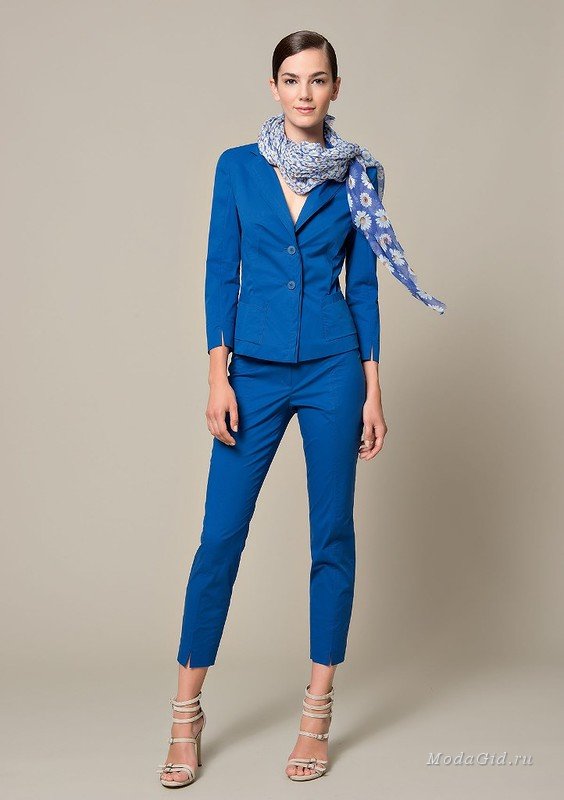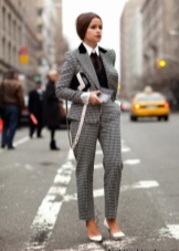 Fashionable costumes of the season are presented in soft shades, bright colors are allowed, but they must be combined with a plain blouse or shirt.