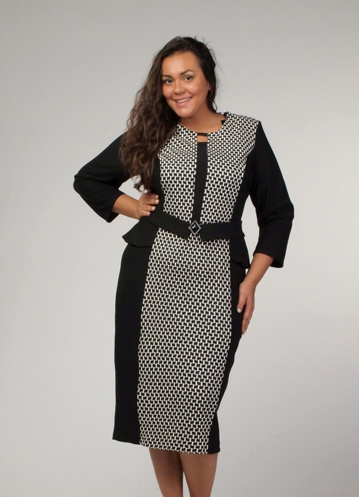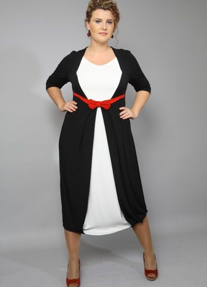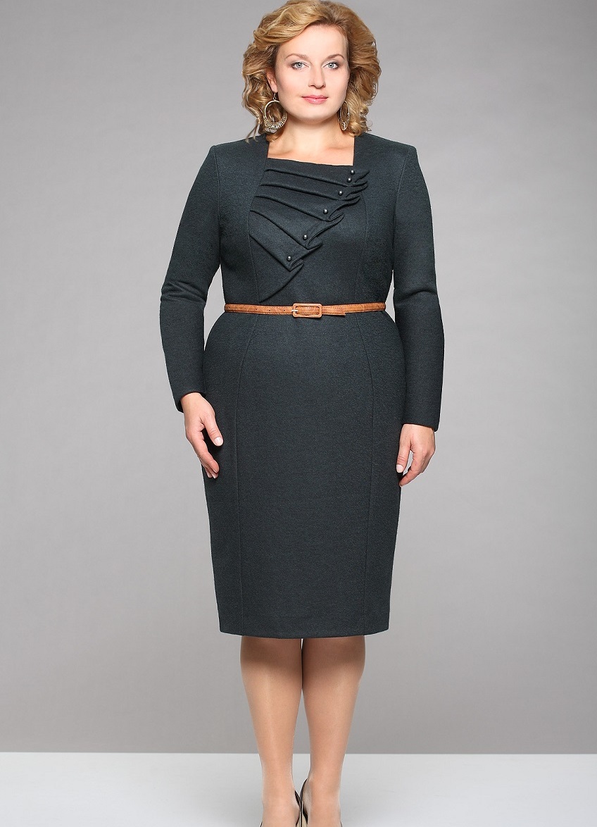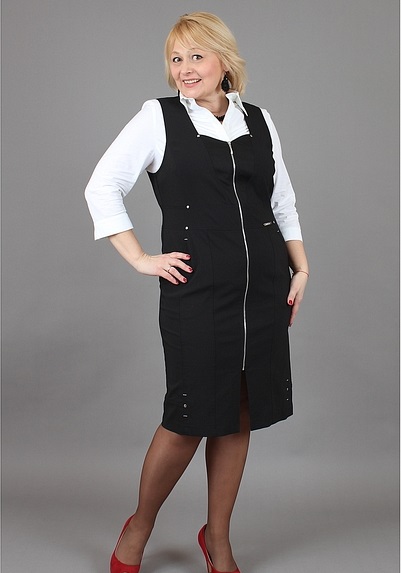 A good option for a fashionable set for obese women is a sheath dress. It will allow you to beat the imperfections of the figure and to emphasize its advantages. It is better for owners of size plus to pick up things with accents on a waist.