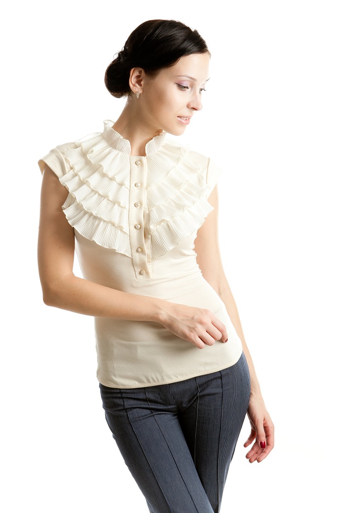 Blouses with ruffles and frills are equally popular: they add charm and feminine overtones to everyday severity. In drawing up an office style, such a blouse is indispensable: it will not harm the working atmosphere and will make the set a little softer.