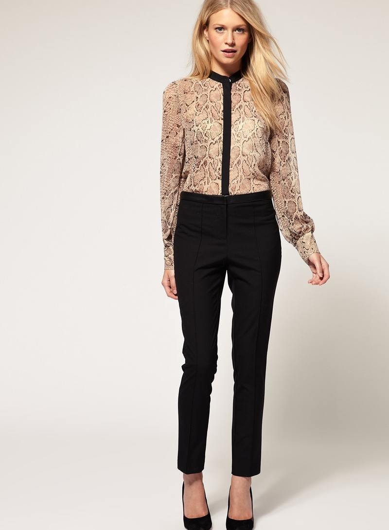 Fashionable trousers are products with a high waistline. The flare is returning, and for narrowed trousers it is better to choose chiffon blouses with a discreet ornament. Trendy pants with a print. Today, stylists recommend combining them with monophonic clothes of strict cut.