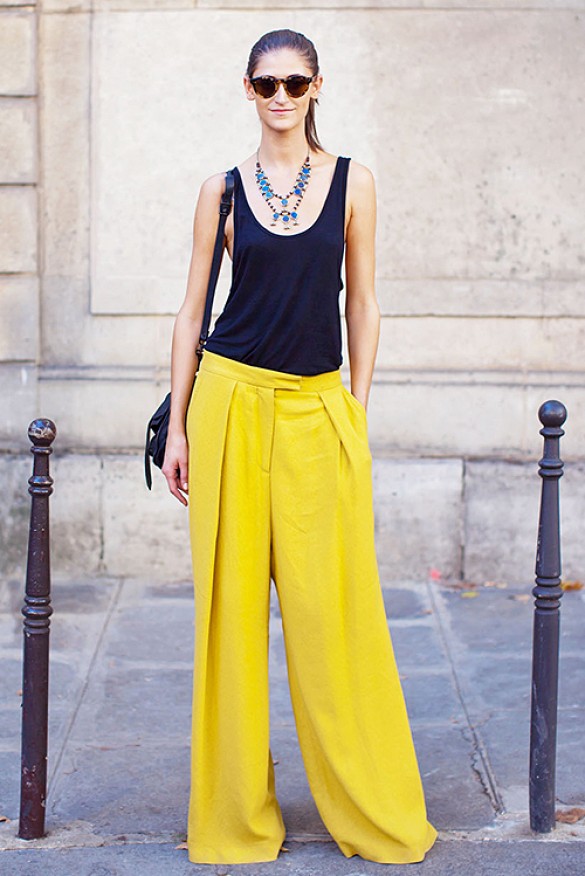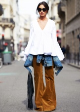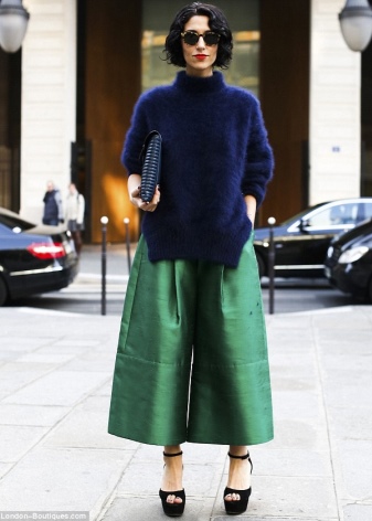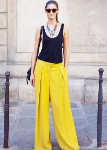 Wide trousers, if you believe the fashion houses and venerable experts, allow you to roam the imagination. In addition to the usual beige, black and white, you can find models with a floral print, or those where one leg is black and the other is in a thin vertical strip.