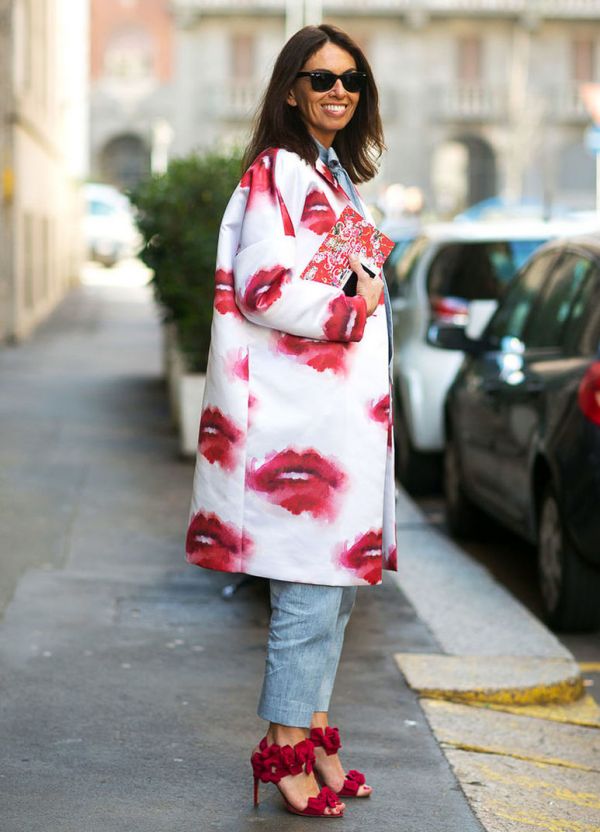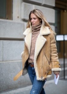 If we talk about outerwear, then more often designers offer plain coats and sheepskin coats. For ladies of elegant age - pastel colors, for daring youth - bright. In the 2015-2016 season, the most fashionable wardrobe item for urban women of fashion was the burgundy sheepskin coat with a sheepskin collar. However, for the fearless have come up with a coat with prints - for example, in the form of red lips painted.