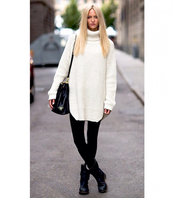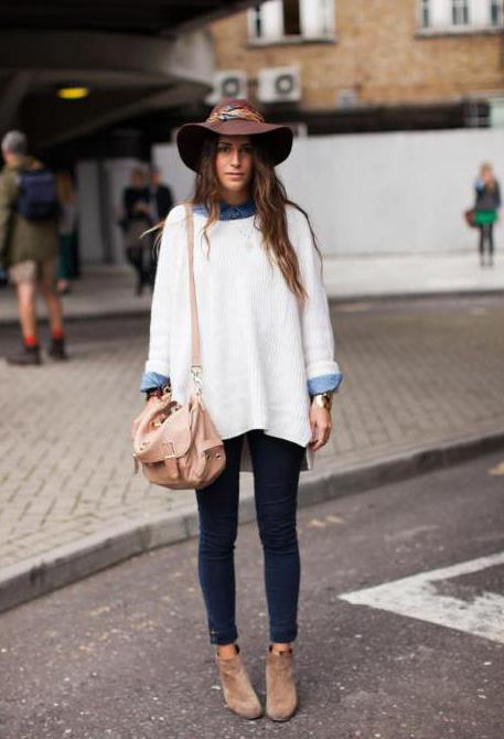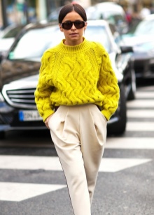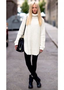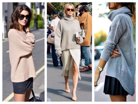 Experienced shopaholics say: if the store did not find a jumper in the right style, then you should look into the men's section. Sweater - perhaps the most democratic type of clothing oversize. Models with deliberately wide sleeves are suitable for creating a feminine and tender look, with a collar-collar for a bold and daring, and knitted pullovers hardly longer than the knee have very successfully replaced many dresses in casual style.