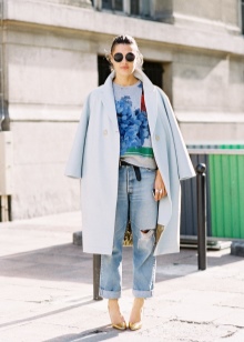 Explanations about what it is - oversize, you can put in a short and capacious "more than usual size", because that is the word translated. All things related to this stylistic direction look as if a woman borrowed them from her boyfriend or a larger friend. But this very baggyness was carefully thought out by the designers and designers of clothing, who set out to emphasize fragility and femininity, and in no case make the figure more voluminous.