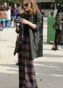 Emma Watson is no longer an excellent student of the famous saga, but an icon of style and a fan of free silhouettes. Pay attention to how ordinary shoes, trousers and sweaters are. But a voluminous black and white coat and a french beret transform an ordinary outfit into an interesting look.