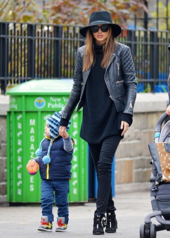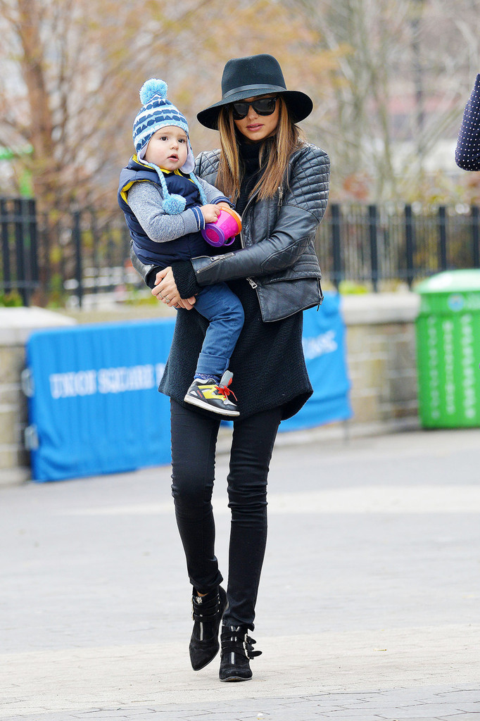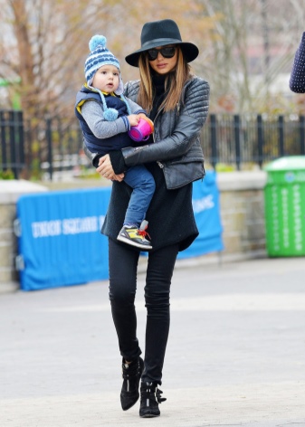 Hats are often a great addition to the style, and the image of Miranda Kerr is no exception. Skinny pants, well-known leather jacket, stretched sweater and wide-brimmed hat - voila! - and attitude to the world of fashion gives not only gait.