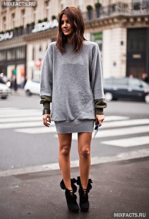 Who is oversize in any form, so it is tall, slim and leggy. But here it is not without nuances.First, you should look at such shirts, sweaters or skirts that slightly open your back, ankles or shoulder - the outfit will be sexy and playful. And secondly, even if you are a fan of exceptionally bright colors, pay special attention to the textures when choosing - they play a key role.