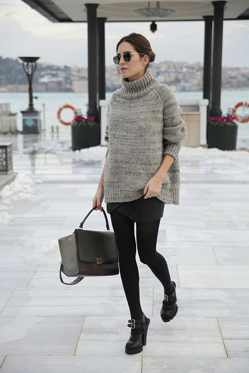 - Sweaters and T-shirts blend perfectly with leggings or skinny. However, if you find a suitable maxi skirt, a spectacular New York style can come out.
