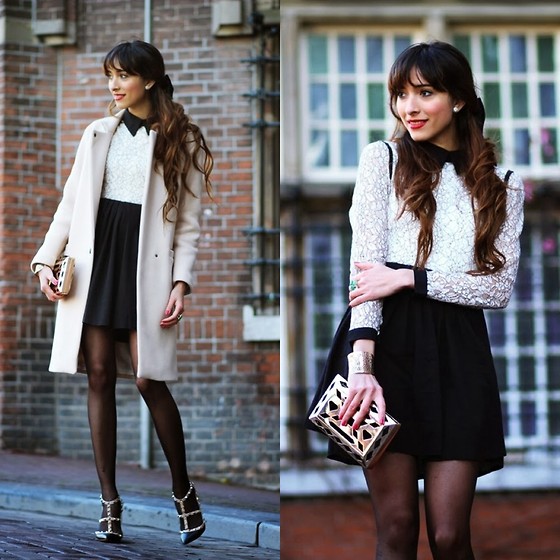 - a black pleated skirt looks perfect with a white blouse with black polka dots;