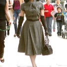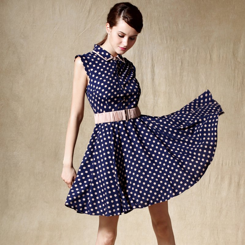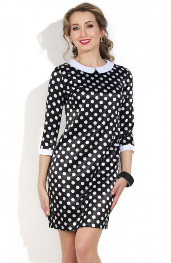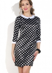 - Choose a dress with a small collar and a wide skirt. A pea outfit will look especially attractive. Complement the clothes with a leather belt at the waist. This set will emphasize the slimness of its owner and will give it a special charm.