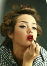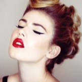 Changed and makeup fashionistas. He became brighter and bold: his eyes were decorated with a wide black eyeliner, and his lips with sexy scarlet lipstick.