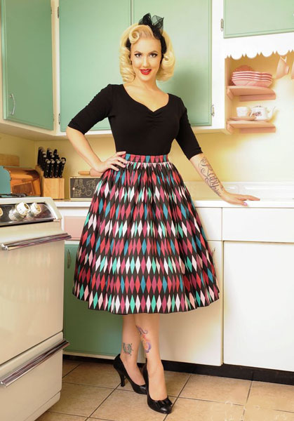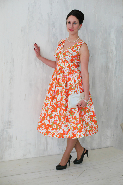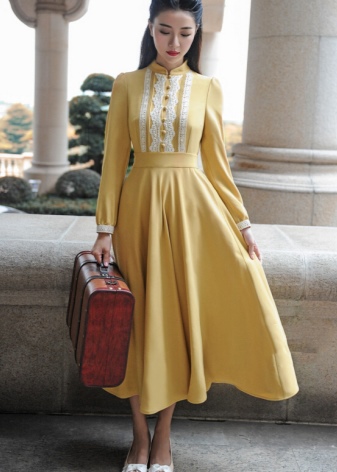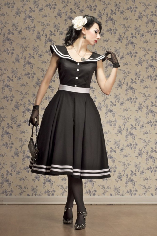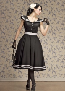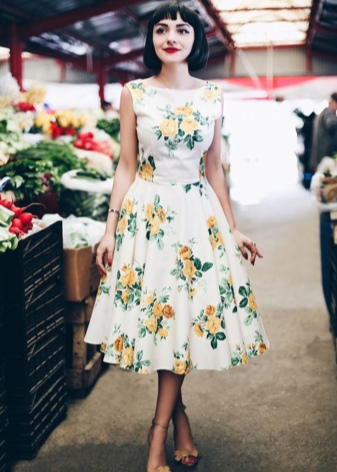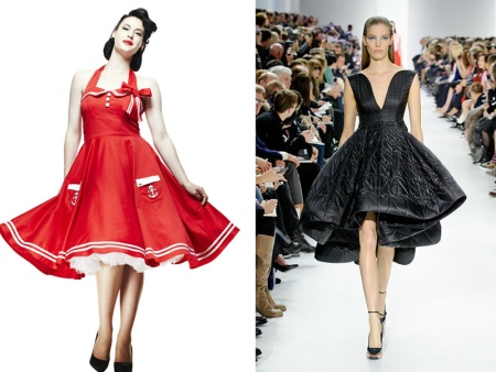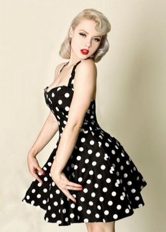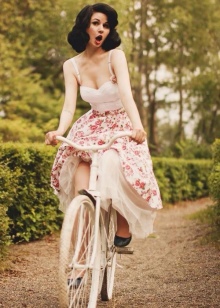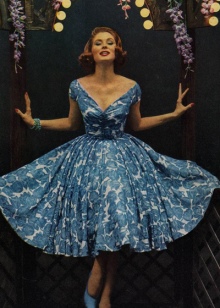 Original dresses with feminine cleavage and fitted bra entered the fashionable ranks. Waist in such things was narrowed, and skirts long and voluminous. Similar instances today are often used to create a juicy pin-up style.