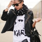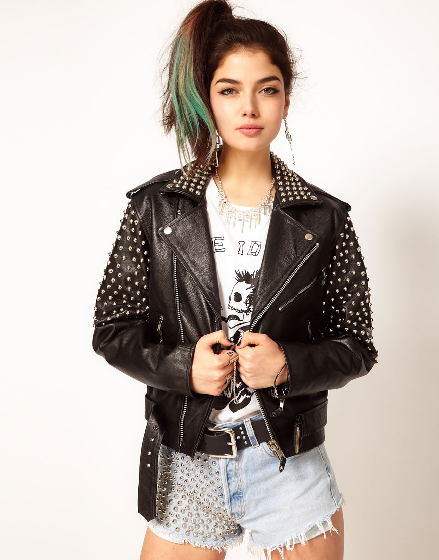 Of the accessories were popular sunglasses, metal jewelry, bracelets, rivets.