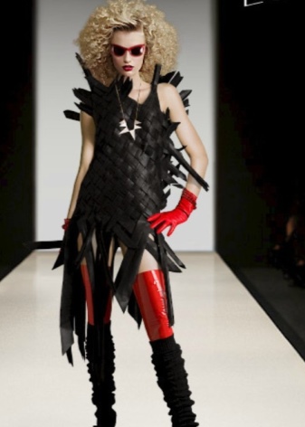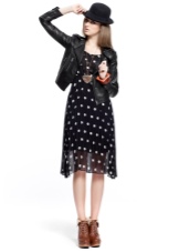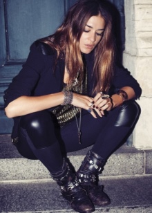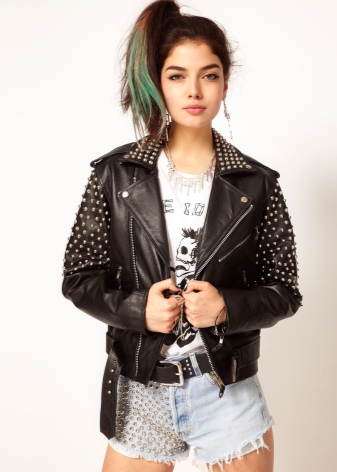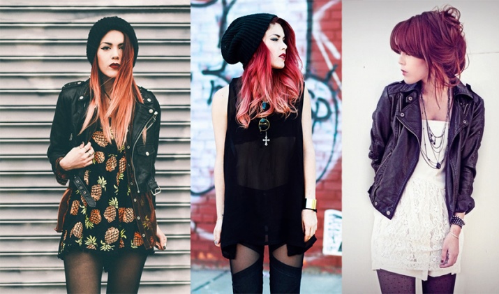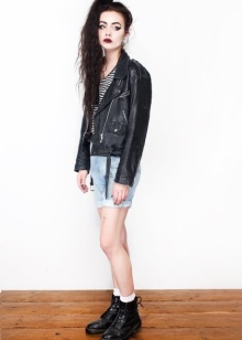 Now girls are striving to create their own image, it would seem, with a combination of the incompatible, and often they introduce very obvious elements of femininity into the rough rock style that looks good and effective. For example, a pink dress of simple cut is complemented with soldier black boots and metal coarse accessories - rivets and studs. A slightly less noticeable contrast is noticeable on the combination of denim suits and leather jackets, complete with high-heeled shoes, often with the same spikes.