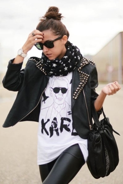 In the field of fashion, various branches of rock style united the love of jeans and leather jackets. In addition, all of them are characterized by a considerable number of elements of femininity due to the fact that many girls were fond of rock style.