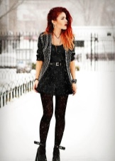 From the advantages of women's clothing in the style of rock is to highlight her sexuality. This is especially true of gothic things or hard rock outfits. Narrow dresses with corsets, leather leggings and pants, short shorts and leather jackets can advantageously emphasize the dignity of a female figure.
