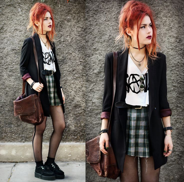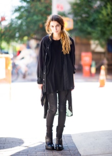- Grunge-style dress is distinguished by its carelessness. To create such an image is very easy. Just refer to the free and voluminous things and comfortable shoes (sneakers, sneakers).