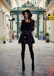 - Corporate can be noted in an interesting set, consisting of a light shirt in a business style and leather pants (or leggings). Upstairs you can throw a short jacket or a model with 3/4 sleeves.