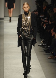 It is recommended to give preference to such things as: leather leggings, dark sweaters and t-shirts, leather jackets and leather jackets.