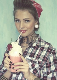 One of the first free trends in clothing is contrasting rockabilly. It is not characterized by such rigid details as spikes or riveting. But it can be traced courage, which can not afford everyone.