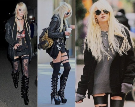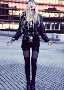 There is good news for young girls: you can create a very bright and even candid rock style image. To do this, you can purchase leather or torn items, add them with sexy corsets or other equally effective accessories.
