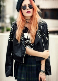 - If you decide to create an image in the style of punk - rock, then remember that it combines incongruous. Materials such as leather and chiffon, lace details and spikes, sequins on clothes and ripped jeans can be put together.