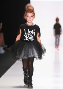For little princesses today, a huge number of different skirts are released, which will emphasize the bold style of the image. This applies to lush multi-layered packs, in which the upper part is painted black and the bottom in pink. Such a thing can be attributed to glam rock.