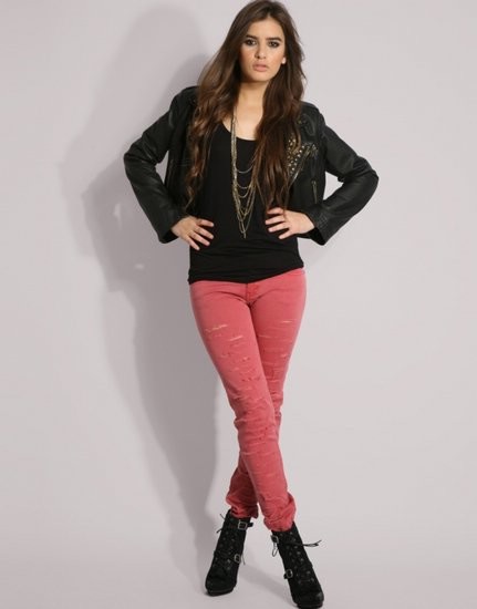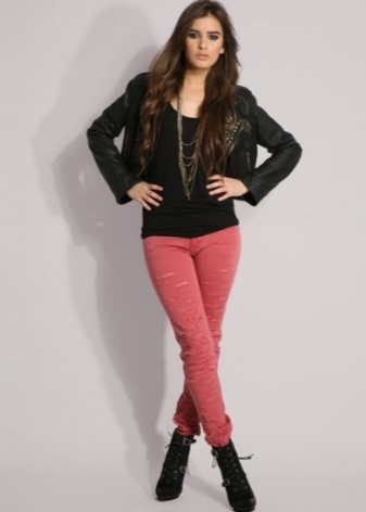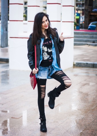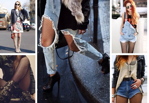 Torn jeans and mesh tights are still in fashion. With these things it is worth being careful. They are not suitable for every occasion. Many celebrities wear these elements for everyday walks or for performing on stage.