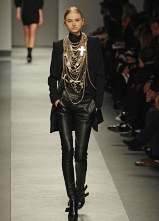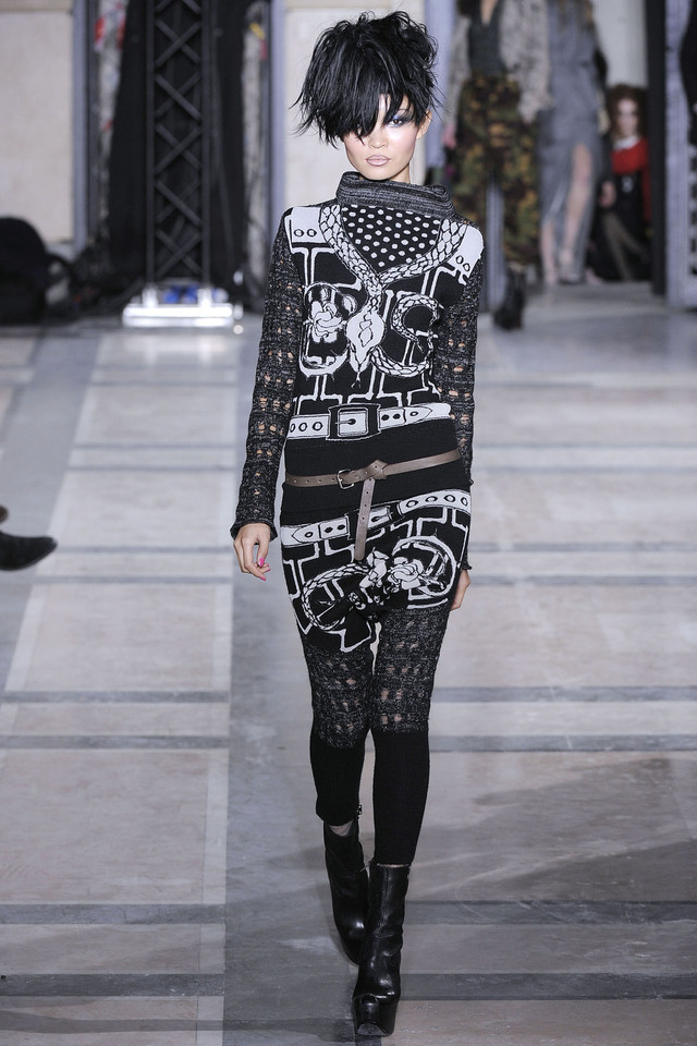 The designer made some interesting adjustments to the stylish images: wristbands, collars (chokers) with spikes and many other things bordering on their appearance with goods from the sex shop.