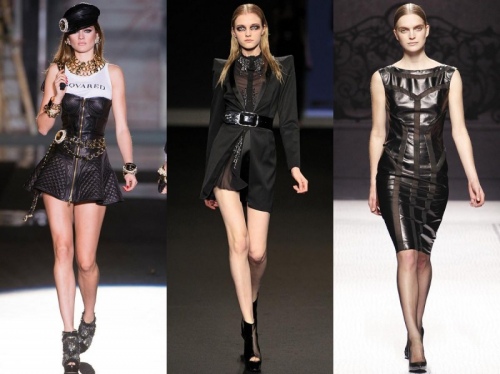 To create a bold rebellious image today is to stock up on such fashionable things as: leather dresses, skirts, shorts, white T-shirts and a variety of accessories.
