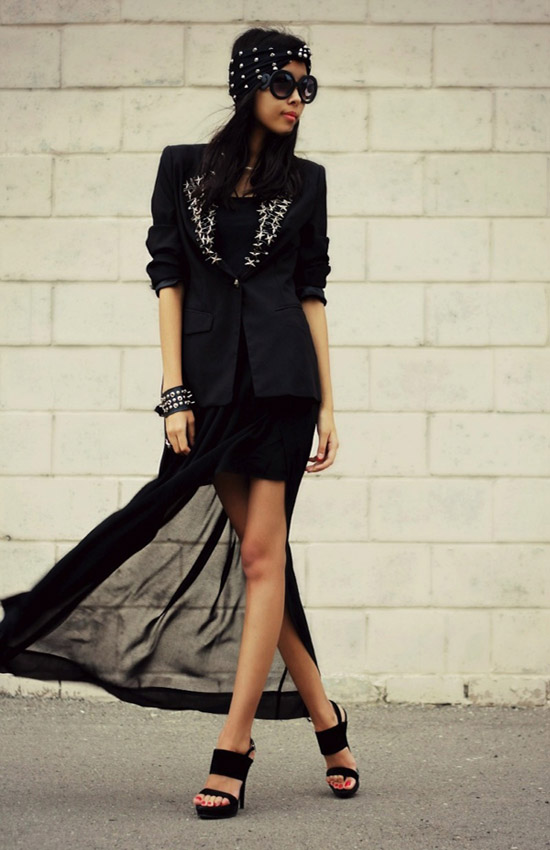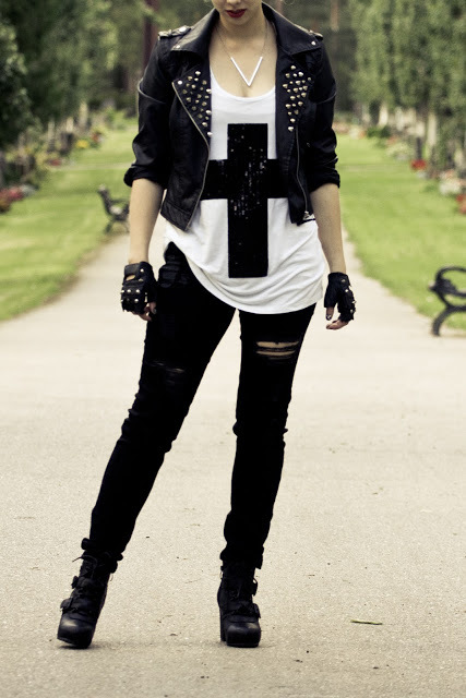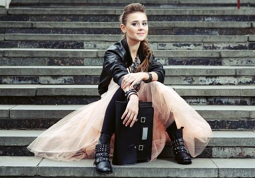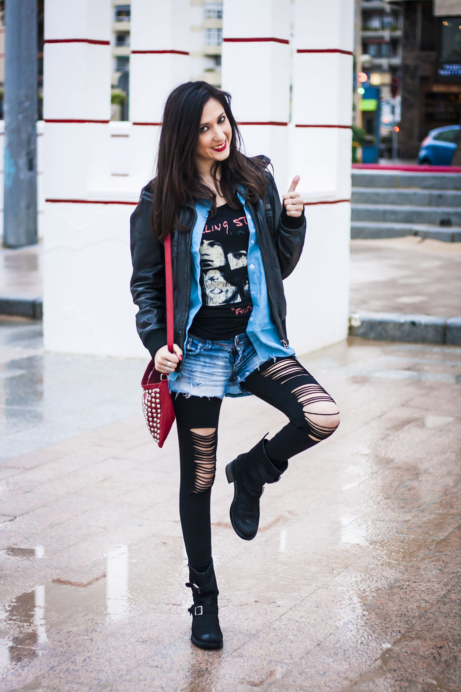 Elements of rock can be added to various sets of clothes. In this way, we can emphasize our bright individuality and create a more effective image.