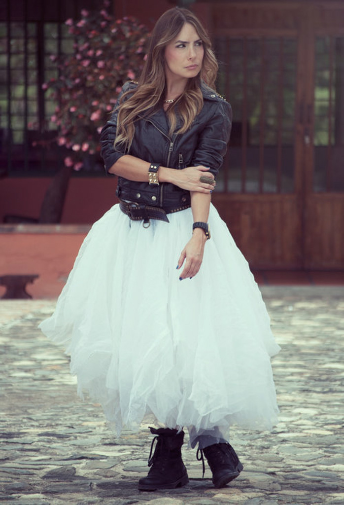 Many celebrities today are turning to the most unexpected combinations to enter the red carpet. These can also be charming dresses with ruffles, complemented with leather jackets and short airy dresses with leather jackets and rock style bracelets.