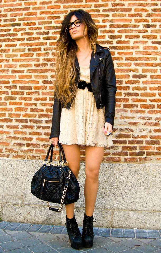 Stylish combinations of feminine dresses and leather jackets (leather jacket) are also in the trend. Be sure to supplement such ensembles with suitable accessories.