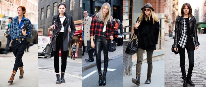 Boots and shoes in the style of rock, made of leather and painted in dark colors will look harmoniously. But try to bypass the side of the model with a tractor outsole.
