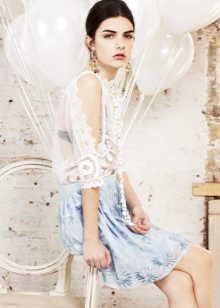 There is another crazy popular trend - naive romance. This style is literally created for gentle and creative natures. Today, many ladies are turning to things in this performance. Naive clothes are hard to confuse with something else. She can have charming sleeves - flounces or lanterns. Very often in these outfits, playful lace or a variety of embroidery is used.