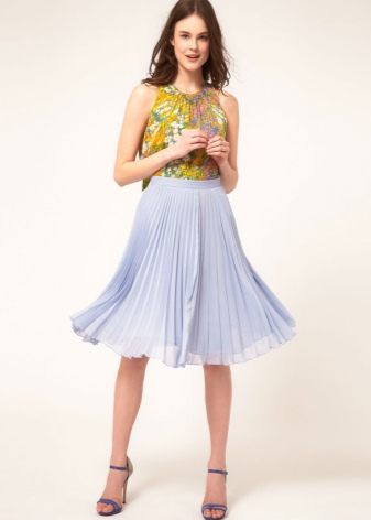 Asymmetrical skirts will look very impressive on the lady. They can be made in the form of a bell or a balloon. Often these things are decorated with lace details, beads or ribbons.