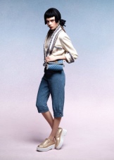 French charm should be traced throughout, but especially in shoes. The famous two-tone pumps, which pleases women brand Chanel to this day, will be an elegant addition to feminine bow. Popular models are made of beige suede, with a black lacquer sock.