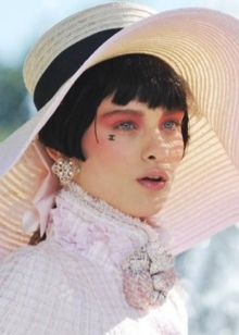 Chanel brand traditionally pays special attention to this detail each year, delighting female founders of its founder with interesting universal models. Usually it is wide-brimmed hats with a semi-circle base, which most effectively fit into autumn and summer images of girls.
