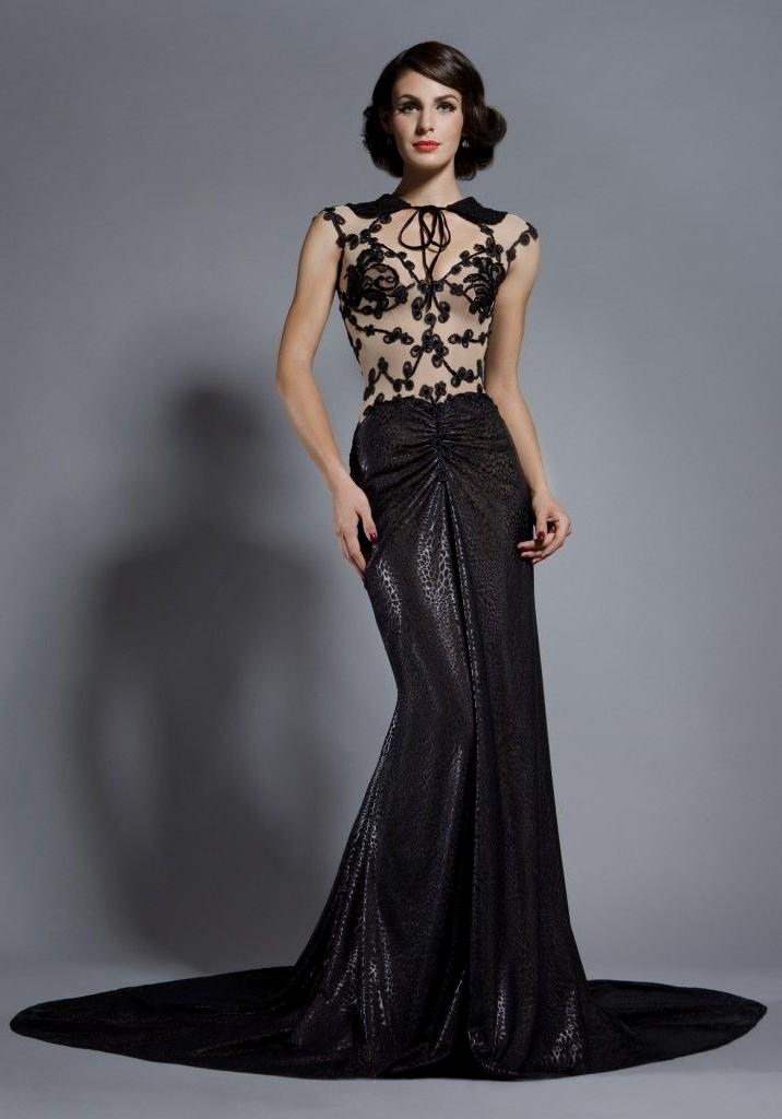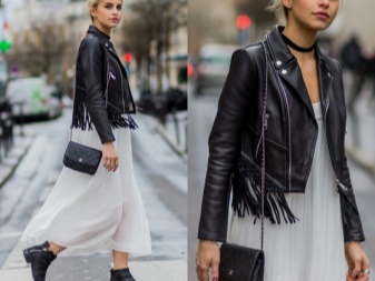 A black fitted strapless dress is a great option for a young, active girl who needs a stylish bow for an evening outing around the city with friends. So, a very effective choice will be a model of a simple cut, complemented by a stylish leather edging. The jacket in color with decorative pearl elements and a necklace will effectively emphasize the bow. In this case, obviously, the most suitable shoes will be two-color boats.