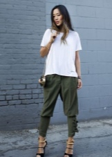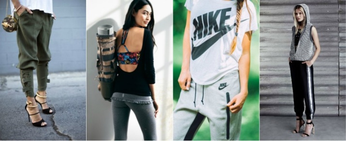 - As the bottom of the girls most often choose free-style pants with side pockets, cargo pants or overalls. Trousers from the sport category do not have arrows. Slender fashionable women will appreciate all sorts of leggensa from elastic materials.