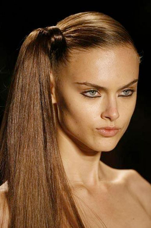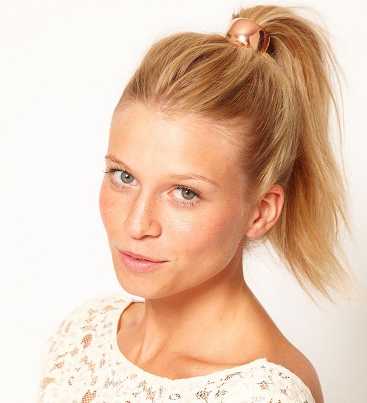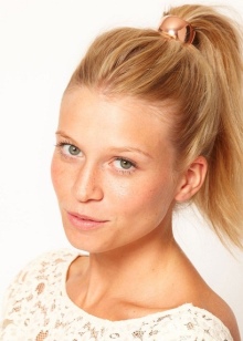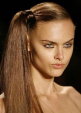 Girls with medium-length hair, as well as long-haired beauties often collect hair in a ponytail. It can be located at the back, on the back of the head, or on the side, as well as a highly raised tail. In this case, it is necessary to carefully collect the hair and fix it with an elastic for hair without excessive decoration.