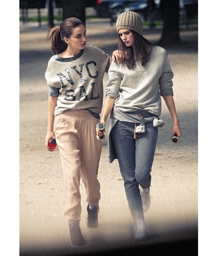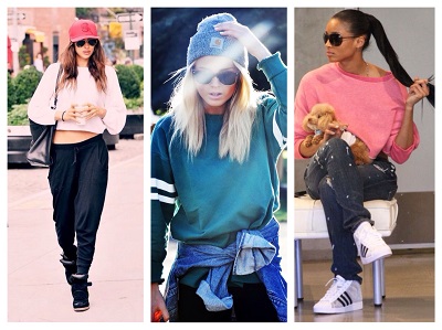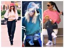 Jennifer Lopez and Rihanna are quite often seen in tight leggings. Selena Gomez and Madonna know exactly how to look gorgeous even in sports pants. Gwen Stefani successfully uses a bomber to create their stylish images, and Beyonce and Jessica Alba show by their example that the fashionable sweatshirt looks good with skirts of different styles.