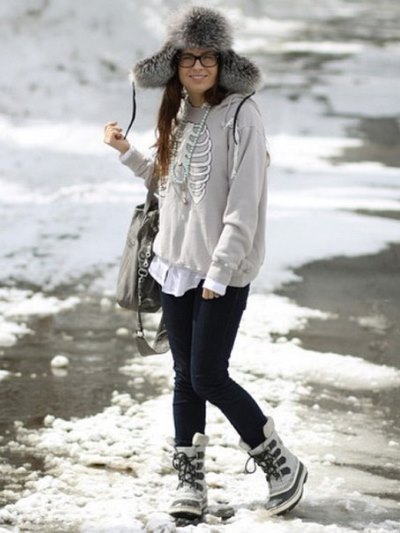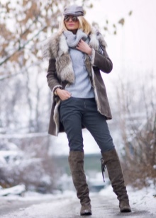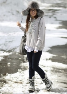 For the cold season, boots with lacing or coarse-style boots, which fit perfectly with the image of sportswear, will do. In addition, for long walks in the cold, girls choose fashionable and stylish dutik and moon rover boots that warm up well in winter.