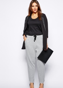 The ability to choose good clothes according to one's shape is very important for full girls. In sports style, as in many others, ladies with curvaceous shapes can find styles and models that can adjust the figure. So, when choosing trousers, it is worthwhile to abandon tight-fitting styles; you should give preference to free models or bell bottoms.