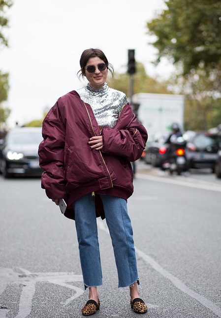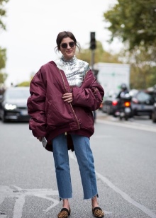 Bright young ladies can pick up a metal-colored bomber to jeans, which will emphasize individuality and allow you to stand out from the crowd.